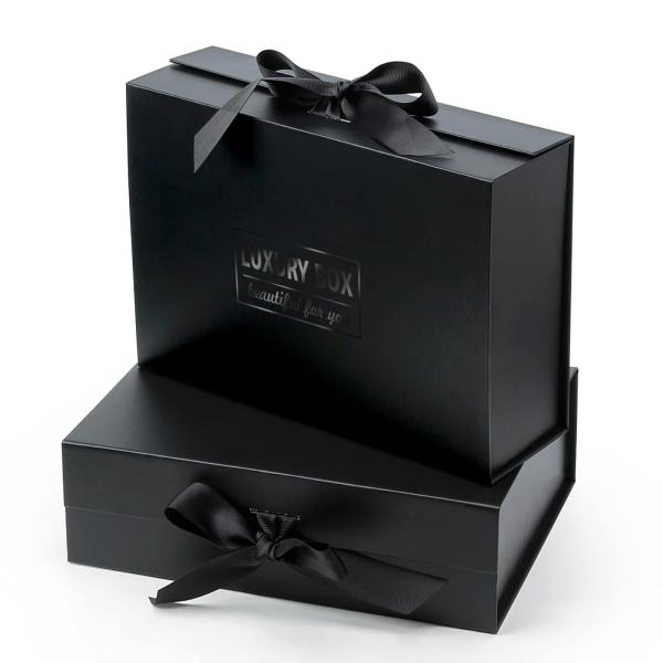 Our Black Gift Box is an elegant and high-end packaging solution for luxury gifts. Made from premium materials, this black gift box features a sleek glossy finish, a secure magnetic closure, and a satin ribbon for added sophistication. Ideal for branding, the UV logo printing strengthens your product's presentation, making it perfect for special occasions, corporate gifts, or upscale retail packaging.